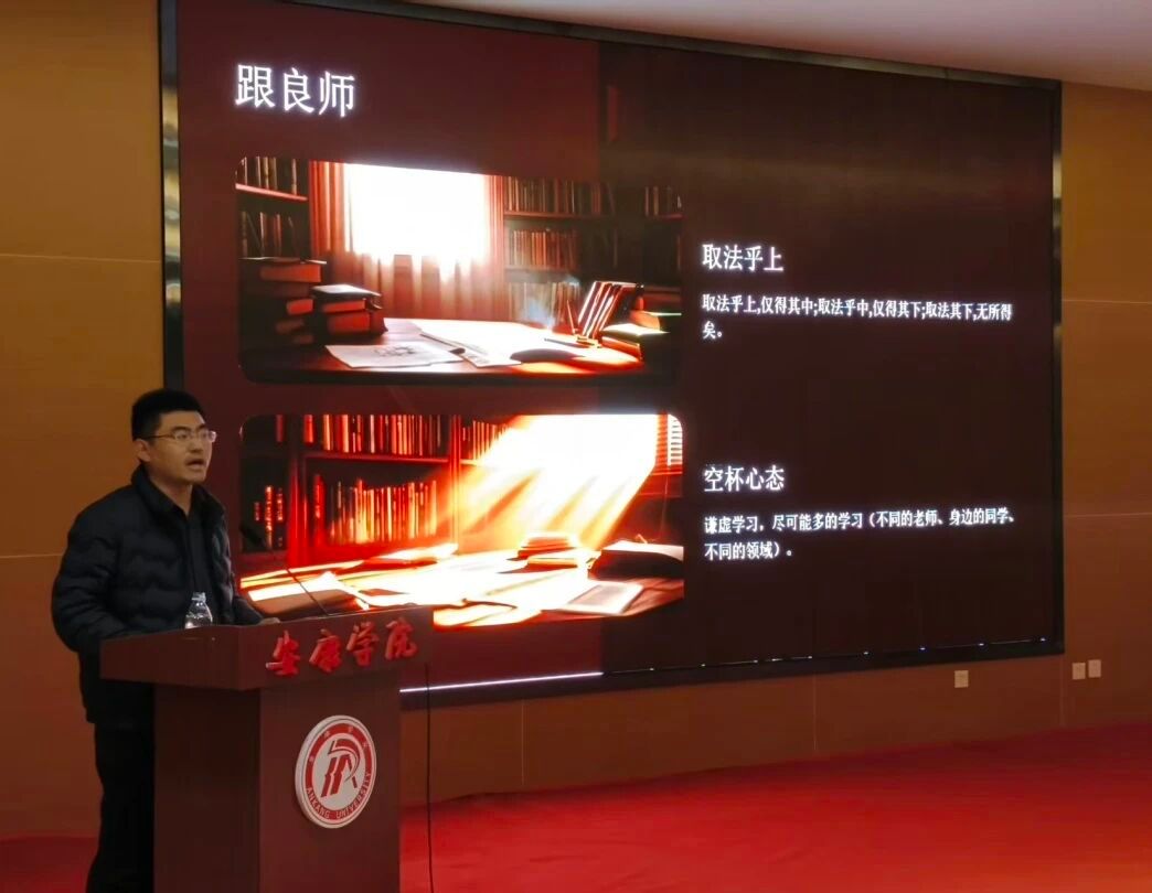 李九伟校友深情回顾了大学生涯,并结合多年基层工作感悟,为学弟学妹们倾囊相授。她围绕“大学学什么、怎么学”,勉励大家树立远大理想,打牢专业根基。针对综合素质提升,他提出“静己心、跟良师、勤思考、多实践”的箴言,鼓励学生积极参与教师课题、投身社团活动,珍惜韶华,心怀感恩,树立终身学习理念。