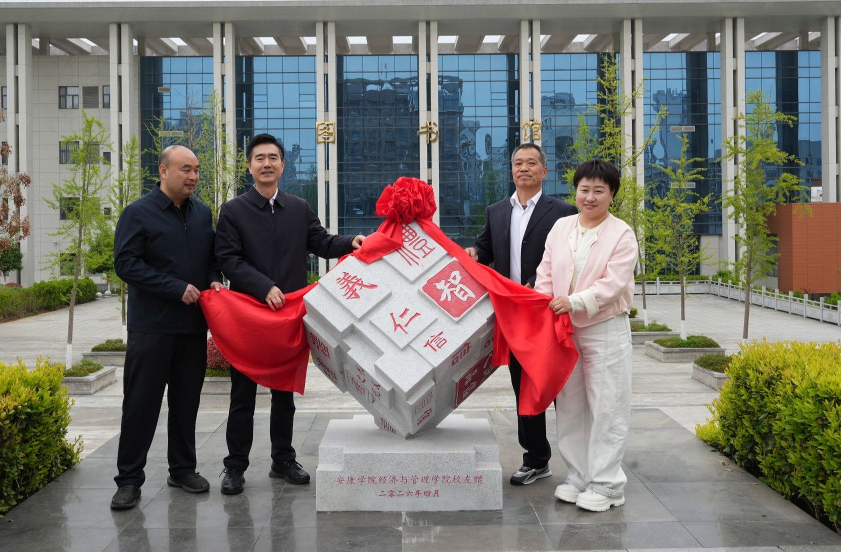工作动态4月2日,一场以“仁义礼智信”为主题的文化纪念石捐赠仪式在我校江北校区隆重举行。这块镌刻中华传统“五常”美德的纪念石,由经济与管理学院校友集体捐赠,诠释着立德树人的教育使命,承载着校友心系母校、文脉相续的深厚情谊。校党委委员、副校长屈险峰出席仪式并讲话,学工部、团委、经管学院相关负责人及校友代表、师生代表共同见证了这一意义深远的时刻。仪式由经管学院党总支书记李成仙主持。