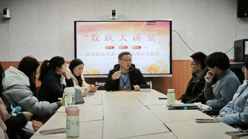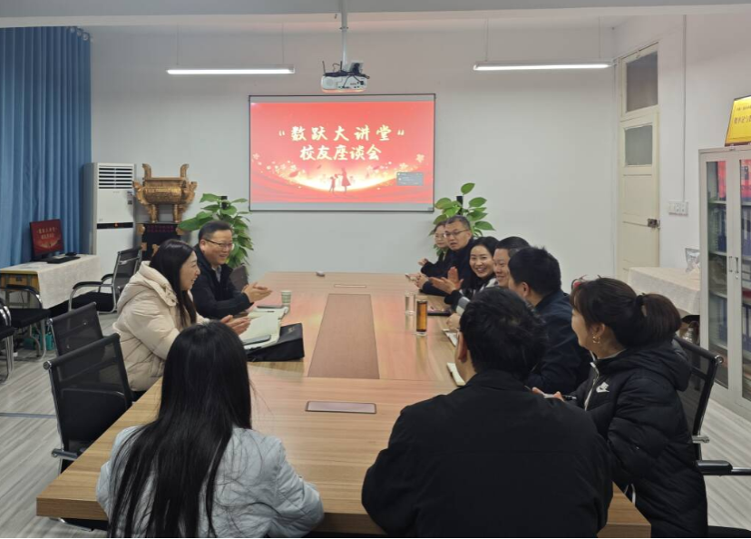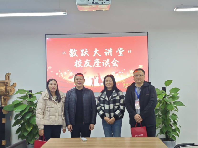 2025年11月19日,数学与统计学院2001级校友郭明强、王艳重返母校,开启了情谊与智慧交融的“数跃大讲堂”校友交流活动。活动不仅包含了与学院领导、恩师的亲切座谈,也面向大一的师范专业学生举办了精彩的经验分享讲座,为初冬的校园注入了浓浓的暖意与奋进的力量。